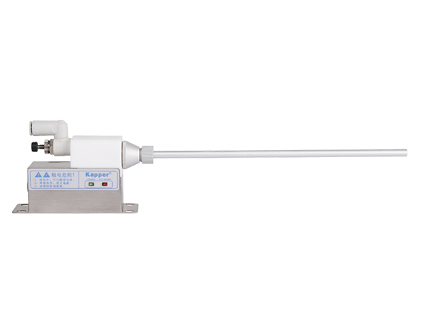 兩個(gè)噴嘴正好位于即將進(jìn)入裝填站之前的位置。一個(gè)噴嘴朝向容器外側(cè),另一個(gè)朝向容器內(nèi)側(cè)。環(huán)形棒位于填裝頭所在高度附近,分配管道末端也位于該處。這樣,就消除了容器壁的粉末吸附,以及粉末在填裝頭上的堆積。可選用KP2001A強(qiáng)風(fēng)力離子風(fēng)嘴