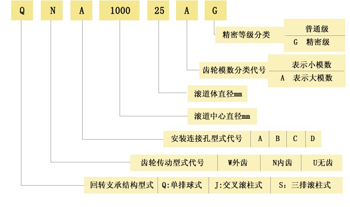 一、回轉(zhuǎn)支承編號方法(JG/T66-1999標(biāo)準(zhǔn)回轉(zhuǎn)支承編號方法)